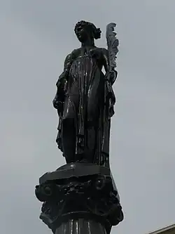 Het ontwerp bestaat uit een zinken zuil waarop een vrouw met palmtak en lauwerkrans staat. De zuil staat in een bekken dat gedragen wordt door twee reigers en dolfijnen. Op de hoeken van het bekken zijn vier maskers als waterspuwers aangebracht. Het voetstuk van het bekken is op een kunst-granieten voetstuk geplaatst, waarin is gegraveerd: "Koningin Wilhelmina 31 Augustus 1898". Het geheel staat in een bassin dat geplaatst is op een sokkel van hardstenen treden. In de hoeken van het bassin zijn vier waterspuwende kikkers.