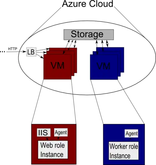 De applicaties in Windows Azure worden uitgevoerd in de vorm van zogenaamde 'instances'. De instances draaien in de vorm van virtuele machines (VM's) op 64-bit Windows Server 2008. Microsoft heeft een speciale hypervisor ontwikkeld voor het uitvoeren van VM's in de cloud. Voor de developer zijn die VM's echter onzichtbaar, hij schrijft zijn applicaties in de vorm van "Web role" en "Worker role instances". Web role instances zijn verantwoordelijk voor de verbinding met de buitenwereld. Daarvoor wordt op de VM's die Web role instances uitvoeren IIS gedraaid en verbinding toegestaan via het HTTP- of HTTPS-protocol. Een load balancer zorgt ervoor dat de binnenkomende verbindingen gelijkmatig worden verdeeld over het beschikbare aantal instances.