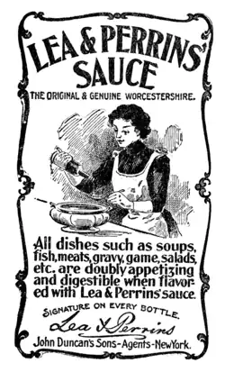 Amerikaanse advertentie uit 1900 voor Lea & Perrins worcestersaus