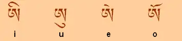 | ཨི i | ཨུ u | ཨེ e | ཨོ o |