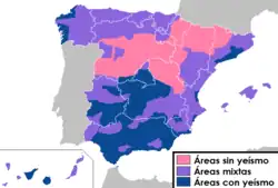 Hoewel het oorspronkelijke Spaans niet yeísta is, komt dit verschijnsel in de meeste varianten van het Spaans voor: in de varianten van het zuiden van Spanje en in grote delen van Latijns-Amerika. Ook in de rest van Spanje wint het yeísmo de laatste decennia aan terrein. In het oorspronkelijke Spaans wordt de ll uitgesproken als /ʎ/ (lj) en de y als /j/ (j). Varianten met yeísmo kennen slechts één uitspraak voor beide letters, als /j/ (j) in Zuid-Spanje en het grootste deel van Latijns-Amerika en als /∫/ (sj) in het Rioplatensisch Spaans in Argentinië en Uruguay. In sommige gevallen leidt dit er toe dat twee woorden die verschillend worden geschreven, op dezelfde manier worden uitgesproken zoals cayó (hij viel, van het werkwoord caer) en calló (hij zweeg, werkwoord callar).