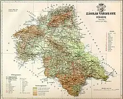 Het comitaat had enigszins een vlak en anderszins vooral een heuvelachtig en bergachtig landschap in het grootste deel van het comitaat, waarin ook hoofdstad Zagreb / Zágráb / Agram gelegen was, naast dat deze stad gelegen was aan de Sava. De Kupa met meerdere kleinere rivieren doorstroomde het gebied. Onder andere maakten de middelgebergten: Medvednica , Hrvatsko Zagorje en het Zrinska gora deel uit van het comitaat.
