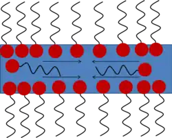 Bovendien maken oppervlakteactieve stoffen de film stabieler voor dikteschommelingen, als gevolg van het marangoni-effect. Dit geeft enige elasticiteit aan het grensvlak: als oppervlakteconcentraties niet homogeen over het oppervlak verspreid zijn, zullen marangoni-krachten de neiging hebben om de oppervlakteconcentratie opnieuw te homogeniseren, zie figuur 2.