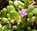 De plant draagt kleine, meestal paarse, soms roze of bijna witte bloemen. De kleine dikke bladeren zijn 0,5 – 5 cm lang en lichtgroen, soms roodachtig als ze ouder worden. Het is een kruipende niet-houtige plant.[3]