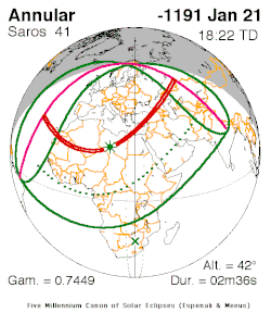 De ringvormige zonsverduistering van 21 januari 1192 v.Chr. is voor de chronologie van belang. Zij wordt vermeld op een kleitablet van de stad Ugarit die niet lang daarna verwoest zou worden om daarna nooit meer te herrijzen.