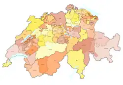 | Kanton | Totaal | democratisch links | linkse radicalen | gematigde liberalen | evangelisch rechts | conservatieve katholieken |